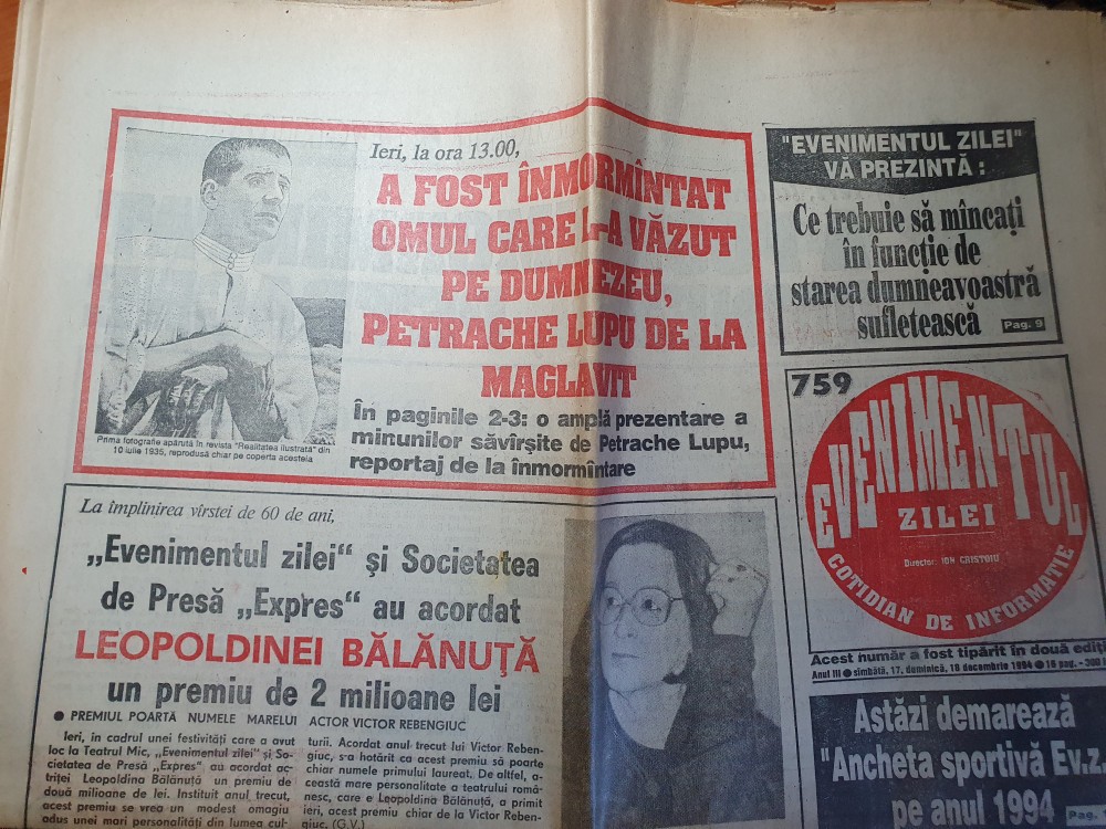 evenimentul zilei 18 decembrie 1994-moartea lui petrache lupu de la maglavit