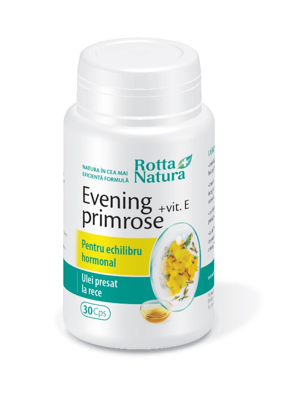 Evening Primrose + Vitamina E de la Rotta Natura este un supliment alimentar natural remarcabil, conceput pentru a susține echilibrul hormonal și metabolic. Este un aliat de încredere în reglarea funcțiilor sistemelor imunitar și hormonal, precum și a aparatului genital feminin. De asemenea, contribuie la stimularea arderii grăsimilor și menținerea concentrațiilor normale ale colesterolului în sânge, oferind protecție împotriva bolilor cardiovasculare.