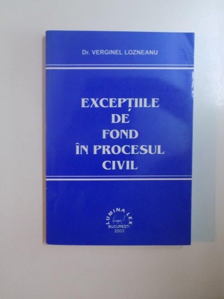 EXCEPTIILE DE FOND IN PROCESUL CIVIL de VERGINEL LOZNEANU, 2003 , PREZINTA SUBLINIERI