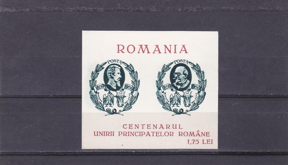 EXIL,ROMANIA-SPANIA,CENTENARUL UNIRII PRINCIPATELOR 1959 BLOC NEDANT.,MNH