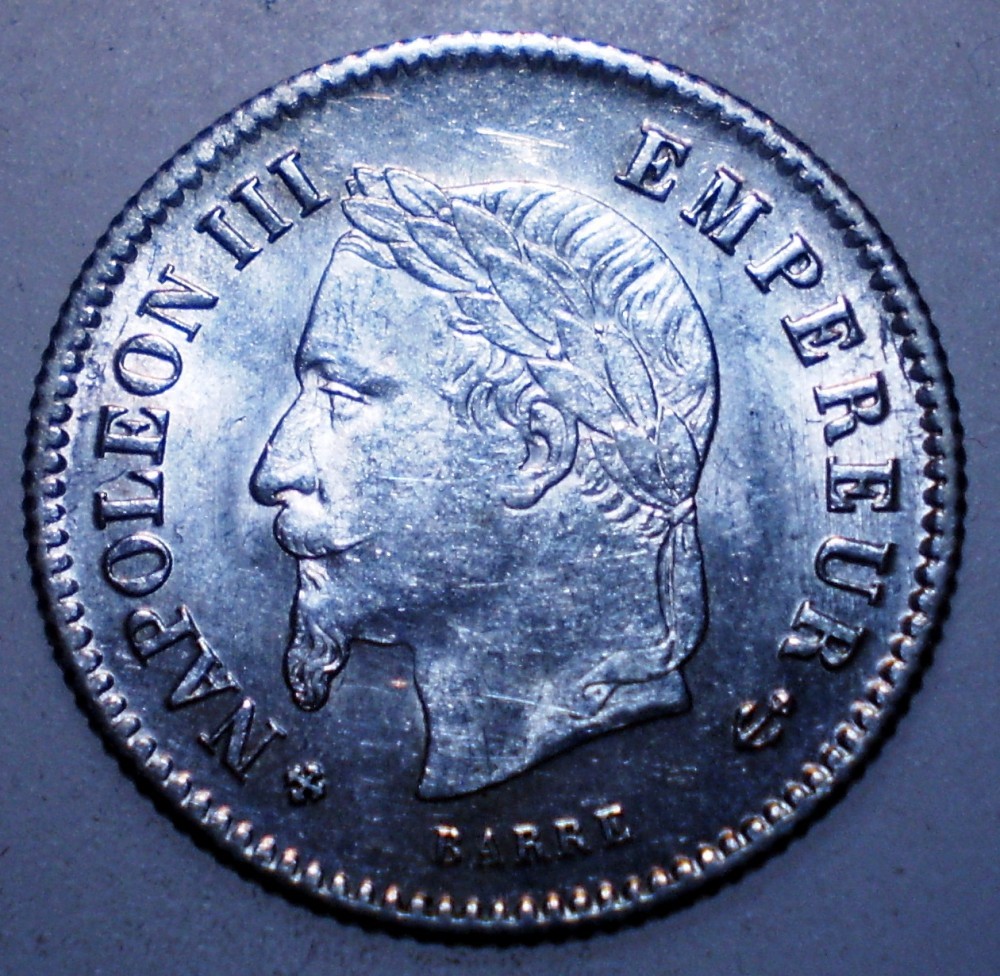 F.243 FRANTA NAPOLEON III 20 CENTIMES 1867 BB XF/AUNC ARGINT