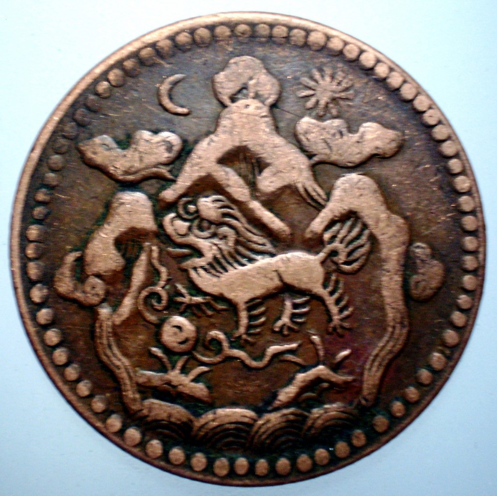 Copper Obv: Moon and sun above 3 mountains Edge: Reeded