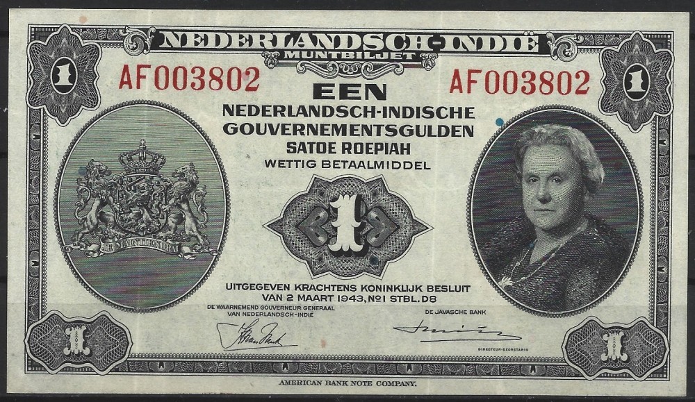 INDIILE OLANDEZE - 1 GULDEN 1943 - P 111 - UNC / CEA DIN SCAN