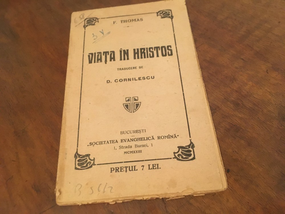 F. THOMAS, VIATA IN HRISTOS. TRADUCERE D. CORNILESCU. BUCURESTI 1923- FORMAT PUTIN MAI MIC 17 X 10,5 CM., 80 PAG.