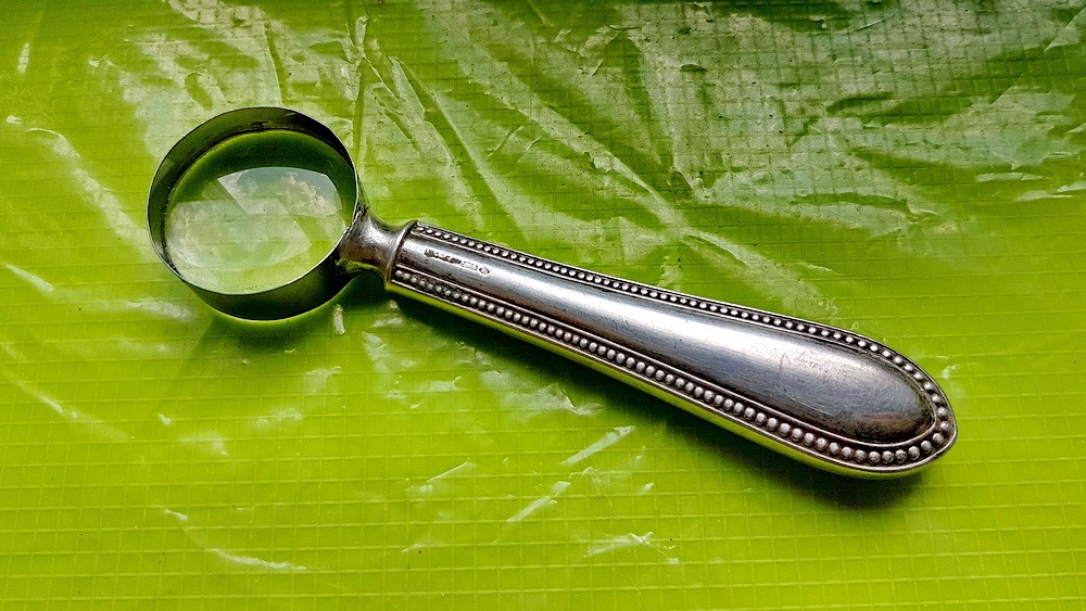 F50-Lupa veche alama argintata marcata anii 1900, maxim interbelica.