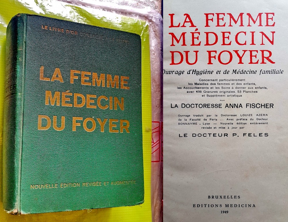 F754-Femeia medic de acasa 1949-Cartea de aur consacrata femeii-In slujba medicinei editie veche Belgia in franceza. Studiu asupra pregatirii femeii in domeniul medical scrisa de 2 femei medici, doctori in medicina: Ana Fischer si P. Feles continut apreciabil de 1138 pagini cu multe planse color si foto alb- negru. Le live D-or, consacre a la femme. Editie foarte bine pusa la punct din multe domenii aferente: medicina, sport, alimentatie, boli, ingrijirea copiilor si bolnavilor, plante, alimentatie, plante, anatomie feminina, in special. etc. Stare foarte buna. Marimi: 25/17 cm.