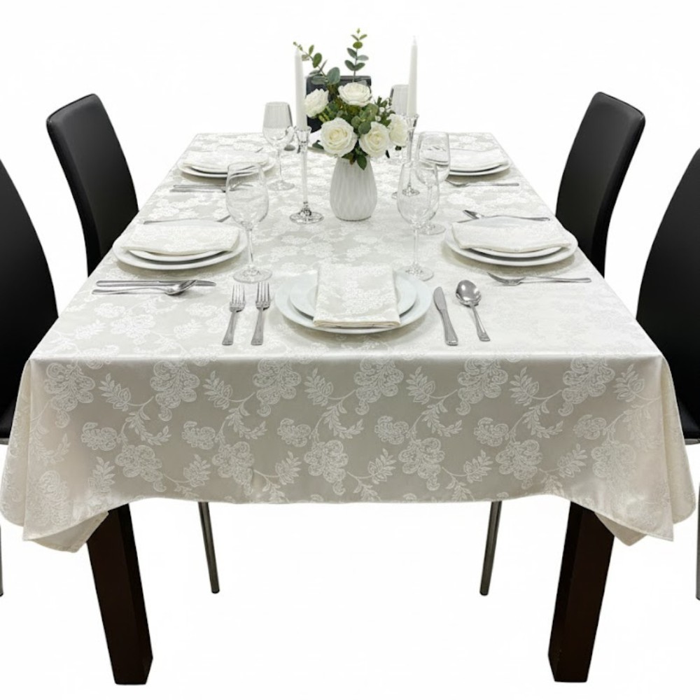 Față de masă 180x140cm dreptunghiulară impermeabilă cu 6 șervetele 40x40cm Koken, 100% Bumbac, Reutilizabila, Fara decolorare, Usor de curatat, Potriv
