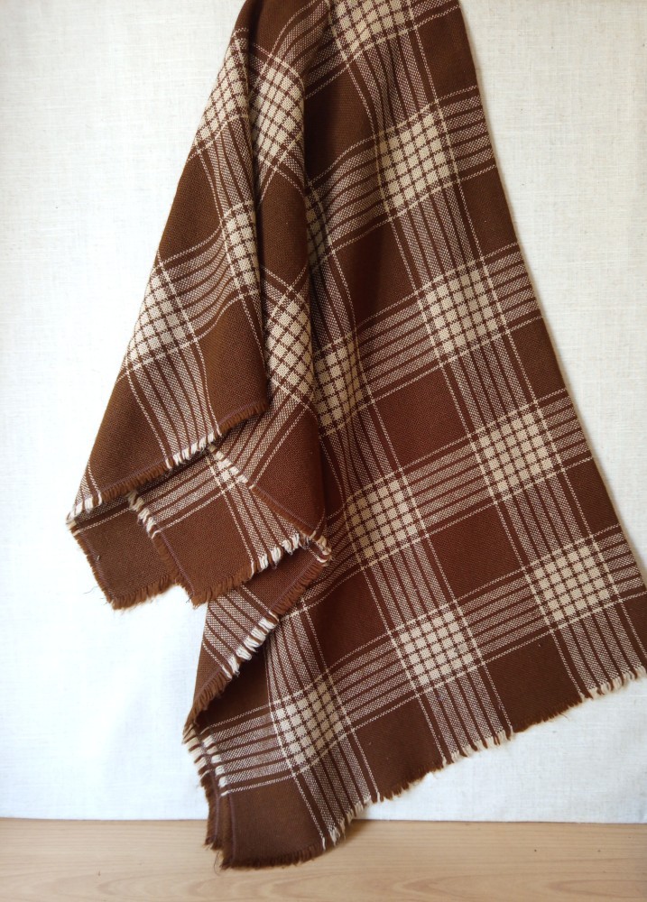 Fata de masă veche/ pled din amestec de lână, maro în carouri. Potrivit pentru interior în stil rustic.