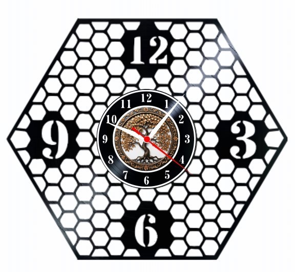 Adaugă un strop de natură și design inovativ în decorul tău cu ceasul de perete cu tema „FAGURE”, realizat manual dintr-un disc de vinil! Acest ceas încântă privirea prin modelul său inspirat de structura fascinantă a fagurelui, combinând arta și sustenabilitatea într-un mod unic.
