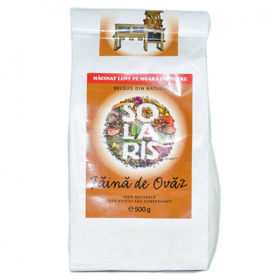 Ovazul era cunoscut in intelepciunea colectiva ca aliment destinat cailor, in principal. In deceniile mai recente a debutat in alimentatia destinata oamenilor. Faina de ovaz este macinata pe o moara traditionala cu pietre. Prin macinarea lenta nu se altereaza calitatile cerealelor, faina avand o calitate superioara comparativ cu fainurile obtinute prin macinare pe moara industriala, la viteze mari, cand bobul este incalzit la temperaturi de 80 grade. COMPOZITIE Faina de ovaz contine o substanta specifica numita avenina, precum si minerale, carotan, vitaminele B1, B2, PP, A, D, amidon, glucide, saponine, lecitina, enzime, ulei, fosfor, hidrati de carbon si chiar un principiu hormonal de tipul foliculinei. EFECTE Faina de ovaz remineralizeaza, da un tonus bun organismului. Poate fi transformata in lapte de ovaz. Datorita compoziţiei sale, pielea tratata cu acest produs este hranita si tonifiata. Face bine sistemului digestiv si echilibreaza nivelul de zahar din sange. Faina de ovaz este un aliment benefic tiroidei. Este folosita in produsele de ingrijire a parului si a pielii. Exista specialisti care recomanda ovazul in tratamentul sterilitatii si al impotentei. MOD DE ADMINISTRARE Cu o textura densa si un gust asemanator cu al alunelor, faina de ovaz este folosita, in combinatie cu cea integrala de grau, in prepararea de paine si prajituri.