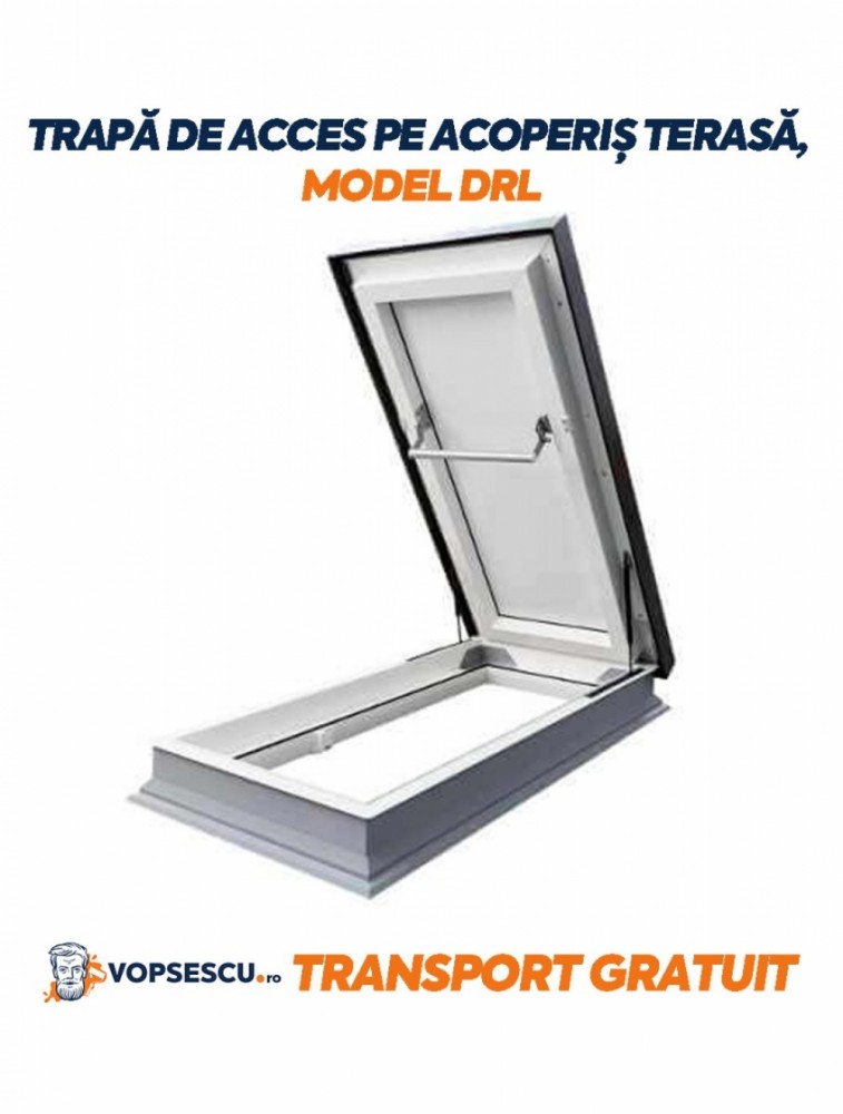Trapele DRL sunt produse inovatoare care asigura un acces confortabil si sigur pe acoperisul terasa. Structura si dimensiunile permit combinarea perfecta cu scarile FAKRO de acces la pod. Caracteristici: Trapele DRL sunt asamblate complet din fabrica Tocul este fabricat din profile PVC multicamerale, umplute cu material izolator Trapele sunt echipate cu garnituri de cauciuc care le asigura performante termice excelente (U=0,67 W/m2K) Trapele pot fi deschise pâna la un unghi de 60 de grade. Amortizoarele cu gaz faciliteaza deschiderea si închiderea acestora, precum si mentinerea lor în pozitie deschisa Benzile anti-derapante garanteaza un acces sigur pe acoperis Dimensiunile trapelor de acces pe acoperis terasa corespund dimensiunilor scarilor de acces la pod (care se comercializeaza separat ) Pot fi montate pe extensii ale tocului XRD/W cu înaltimea de 15 cm, în cazul utilizarii acestora în acoperisuri verzi Exista posibilitatea dotarii cu blocator ZBR care protejeaza împotriva închiderii accidentale a trapei Pot fi montate în acoperisuri cu panta cuprinsa între 0 si 5 grade