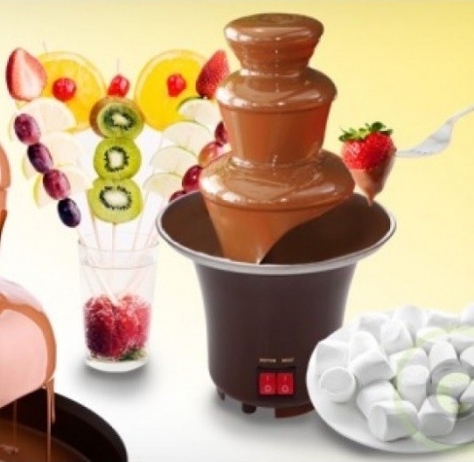 Sau daca e destinata propriei persoane, fantana de ciocolata Fondue este un accesoriu important pentru ca sa realizezi un desert incantator pentru invitati la cina sau pentru desertul de dupa masa principala. Cu ajutorul ciocolatei puteti da tortului un aspect incantator, sau puteti realiza un desert rapid din biscuiti, piscoturi sau napolitane peste care se asterne ciocolata lichida rezultata din fantana Fondue.