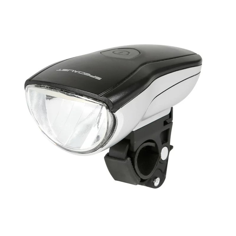 - LAMBIC93566 Descriere: Far bicicleta cu LED Cree 3W Specialist. Cu LED Cree de 3W ultra luminos. 3 functii de iluminare: constant la intensitate maxima constant la intensitate mica intermitenta Suport de fixare pe ghidon cu sistem de eliberare rapida. Indicator de baterie descarcata. Universal. Functioneaza cu 4 baterii AA (nu sunt incluse).