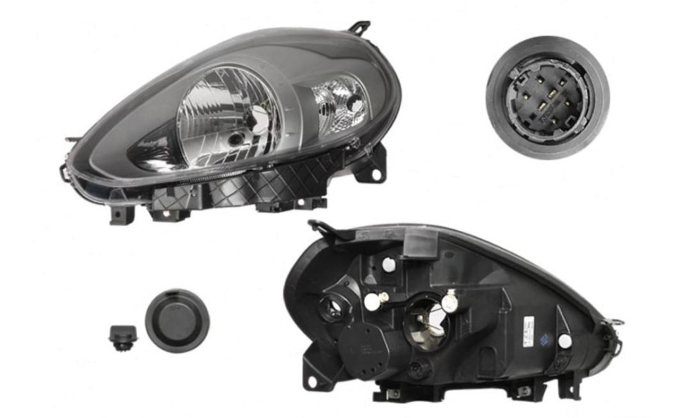 Far Fiat Punto Evo (199) 09.2009- TYC partea Stanga, tip bec H4, lumini de zi, cu rama gri, reglaj electric