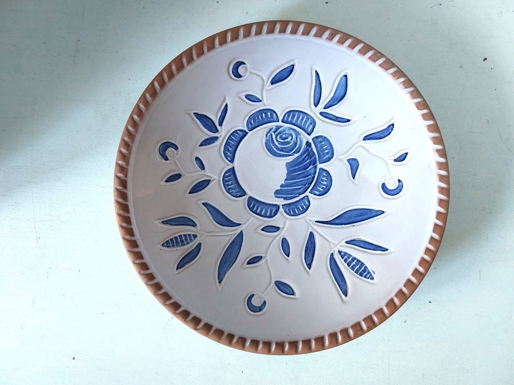 lut ars si glazurat zgrafitat si pictat manul cu floare albastra,