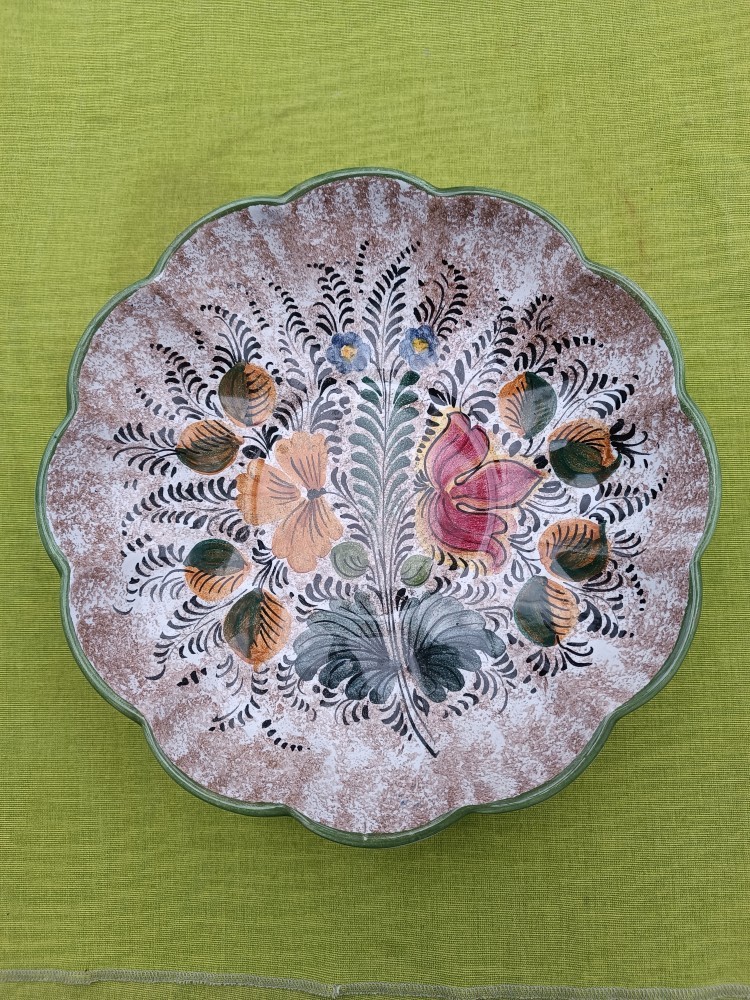 Este o farfurie decorativa de ceramica lucrata si pictata manual cu