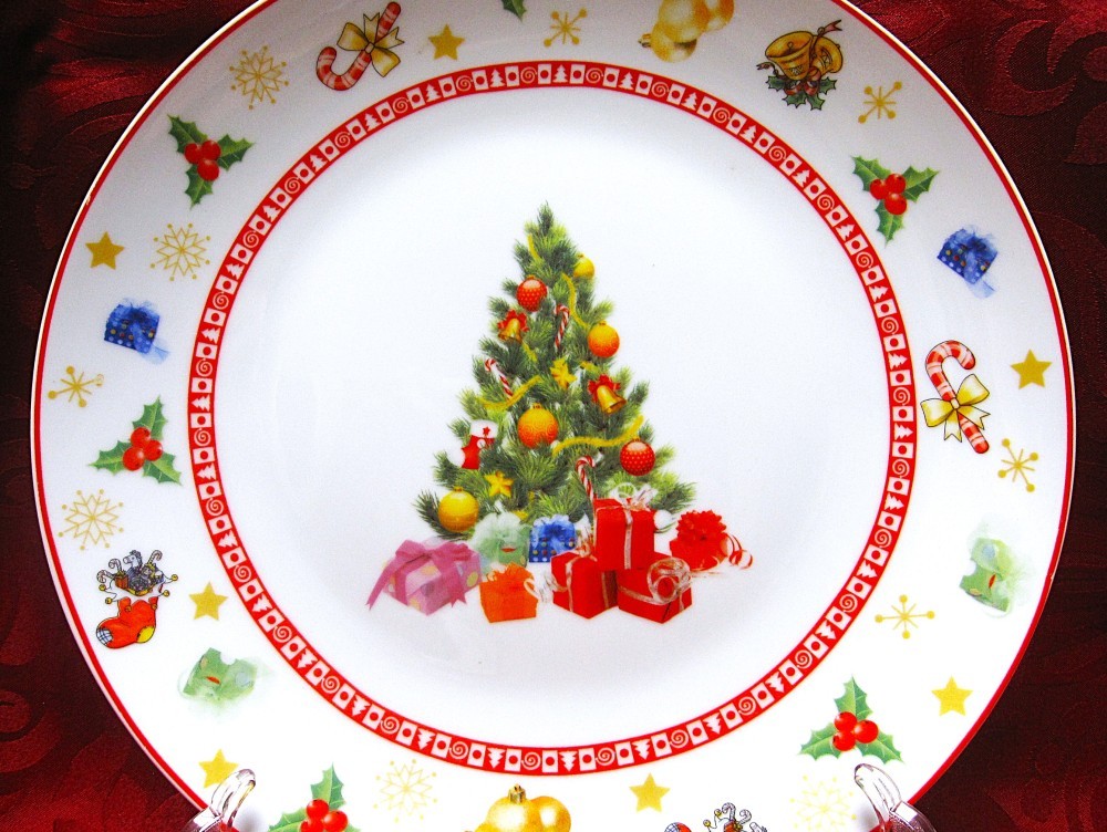 PLATOU PORTELAN LEINER DECOR DE IARNA CU BRAD DE CRACIUN . FARFURIA ESTE IN STARE PERFECTA SI ARE DIAMETRUL DE 26.5 CM
