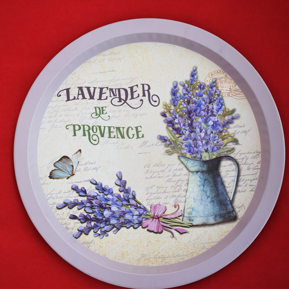 Farfurie metalica rotunda tip tava Pufo Lavender de Provence pentru servire desert, prajituri, aperitive, 33 cm