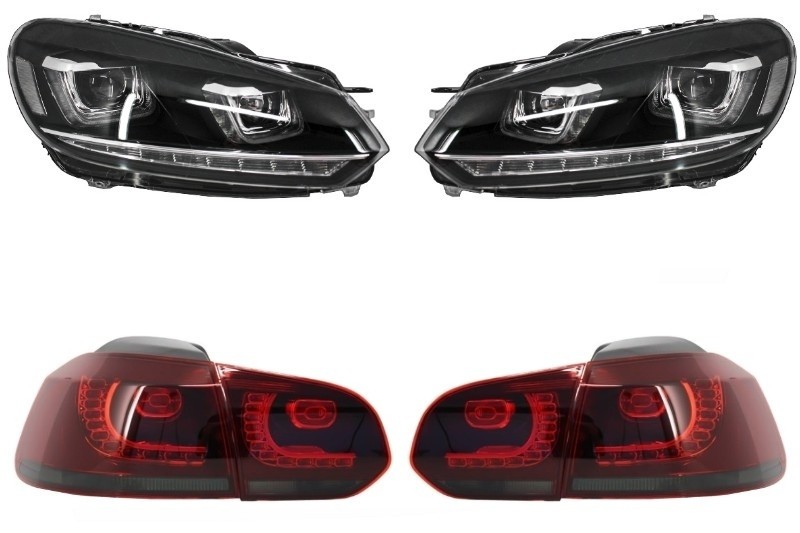 Faruri LED VW Golf 6 VI (2008-2013) Design Golf 7 3D U Design Semnal LED Dinamic cu Stopuri LED R20 Performance AutoTuning