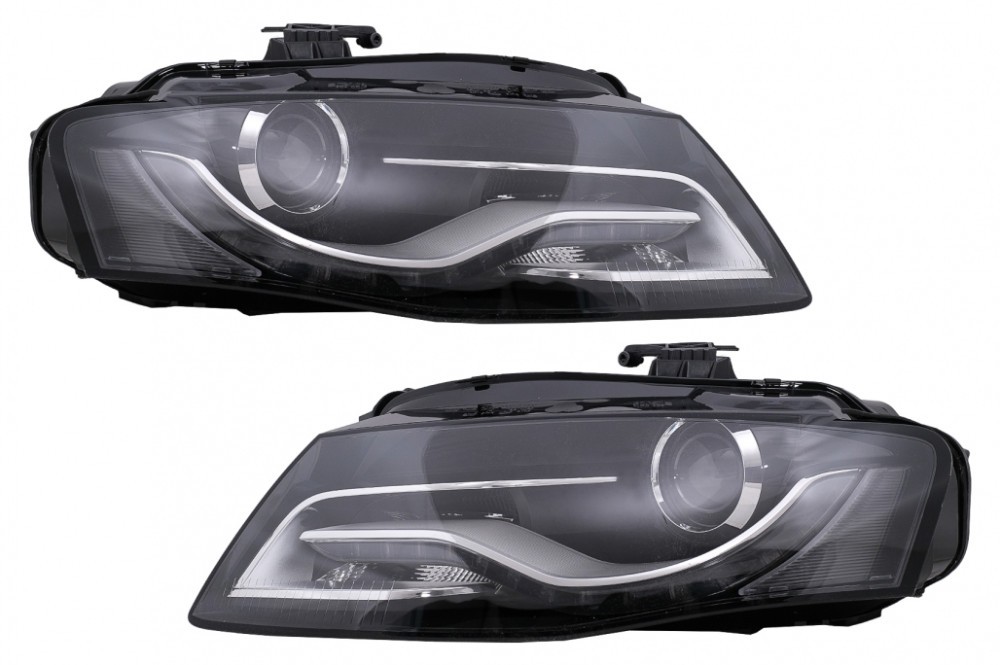 Faruri Xenon Cu Lumini de zi Integrate LED (DRL) Audi A4 B8 8K (09.2007-10.2011) Negre Performance AutoTuning