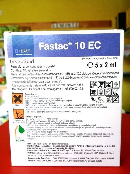 FASTAC 10EC este un concentrat emulsionabil, de culoare galben pai, cu miros carcateristic.