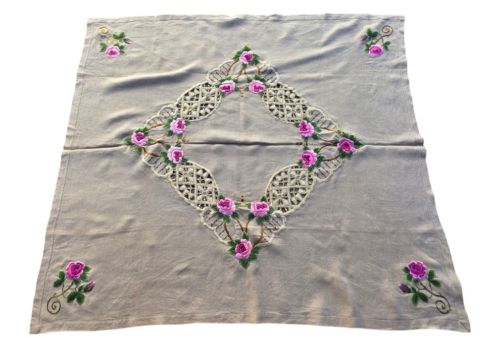 FATA DE MASA MARE VINTAGE DIN BUMBAC GROS CU MODEL LUCRAT SI CUSUT MANUAL IN