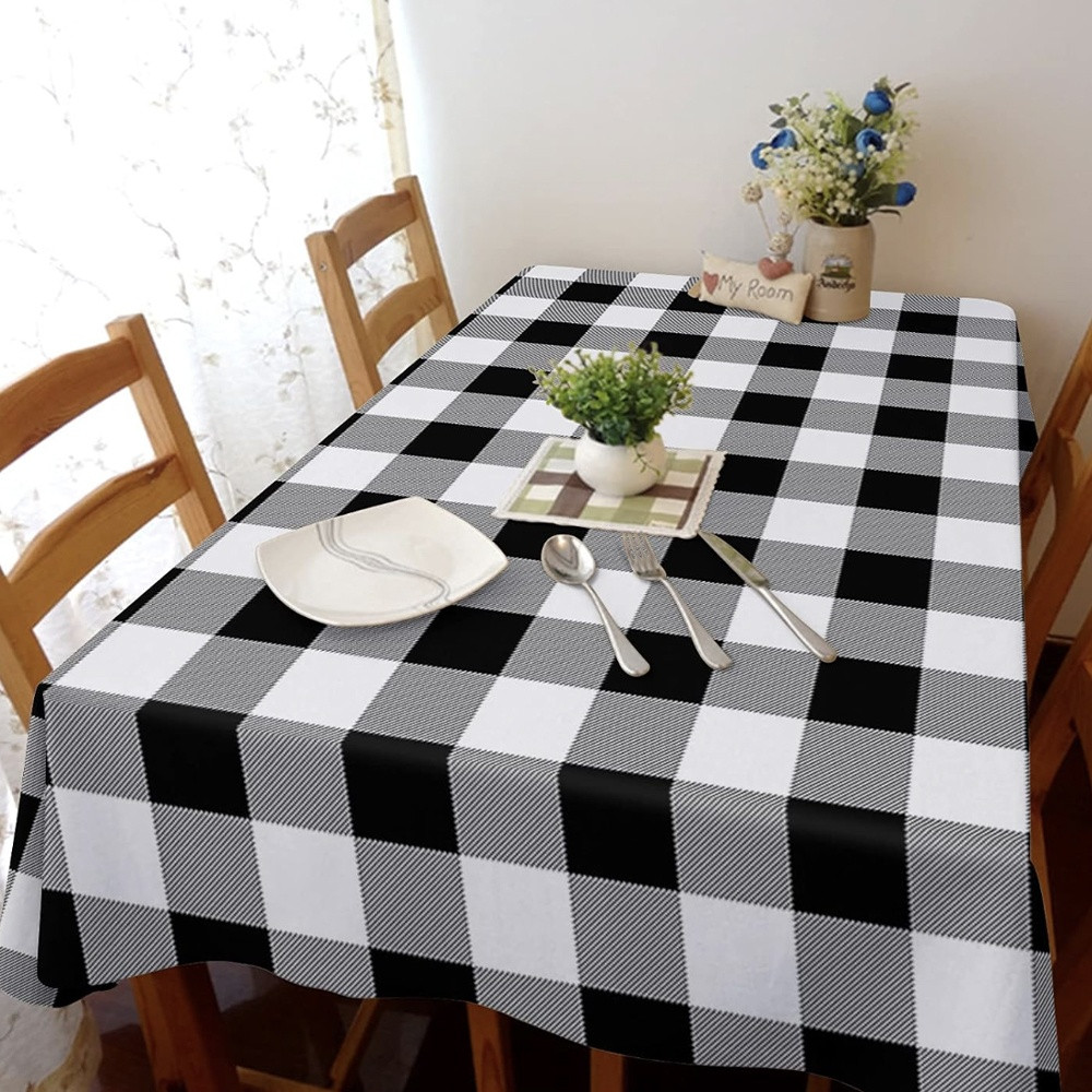 Fata de masa tip musama Pufo Classic, 140 x 160 cm, alb/negru
