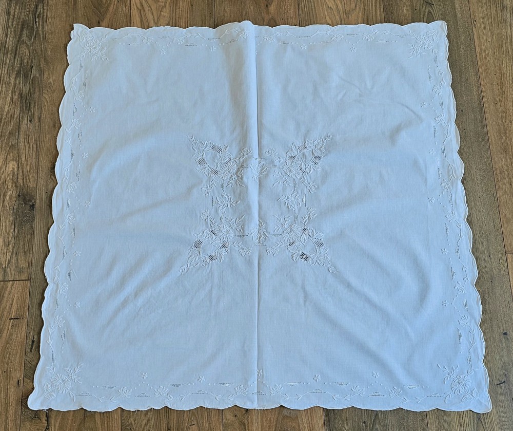 VINTAGE DIN BUMBAC ALB CU MODEL BRODAT. STARE DE CONSERVARE: