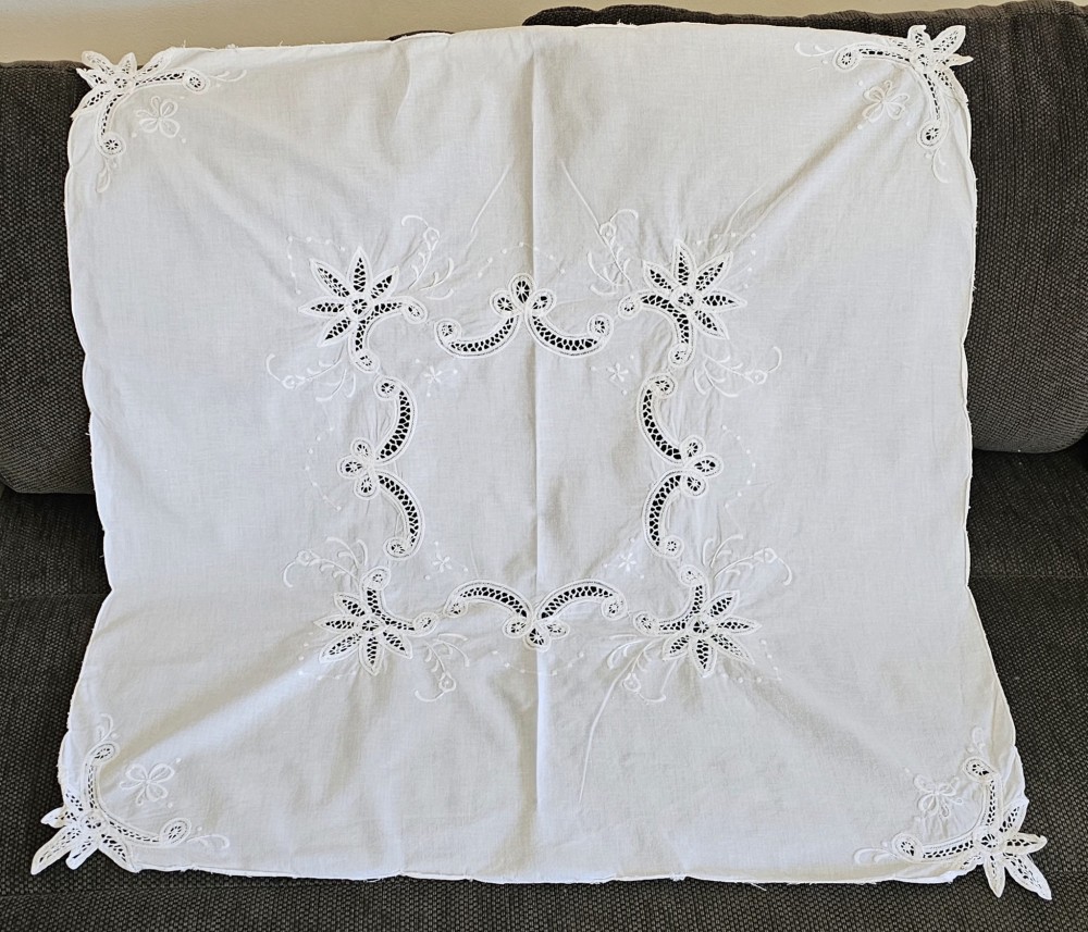 FATA DE MASA VINTAGE DIN BUMBAC ALB CU MODEL BRODAT SI DANTELA INSERATA.