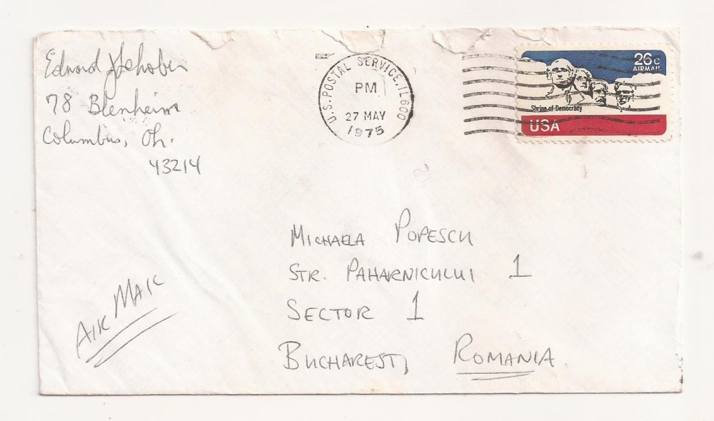 FD11 - Plic Circulat international SUA - Romania , 1975