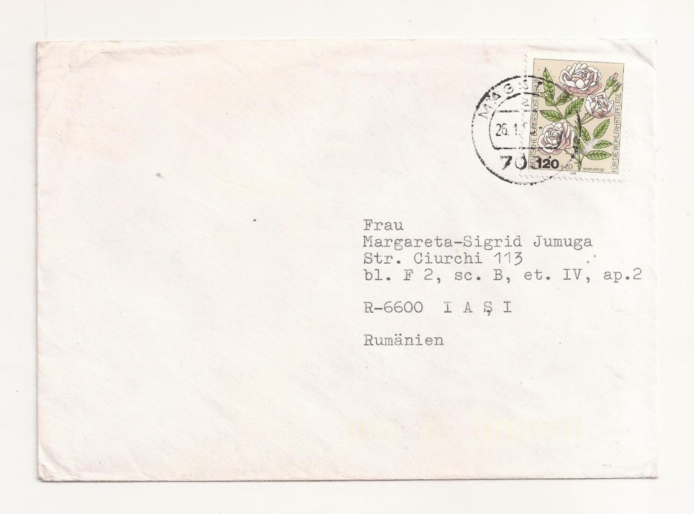 FD19 - Plic Circulat international Germania - Romania , 1983 Plicul