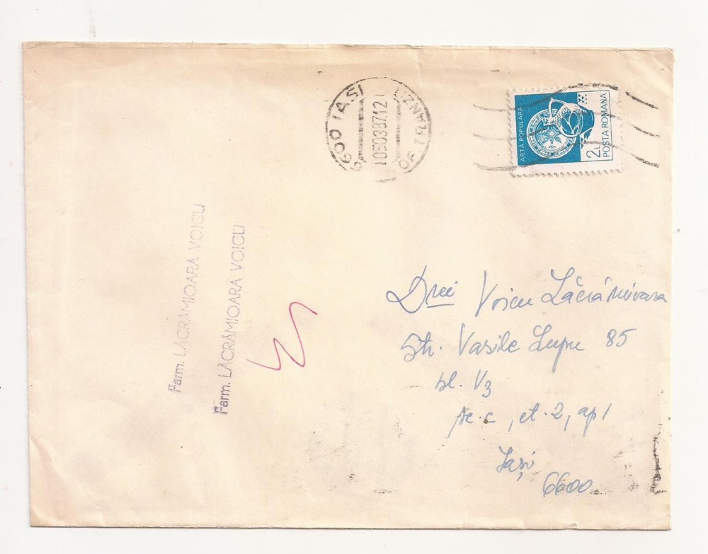 FD7 - Plic Circulat Intern, Iasi - 1987 Plicul este cel din imagine