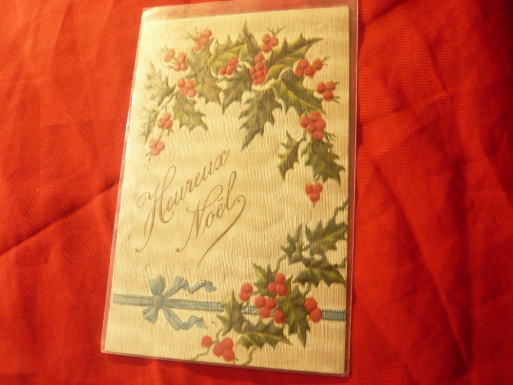Felicitare - cca.1920 Ghirlanda de Craciun- in relief ,circ. Franta