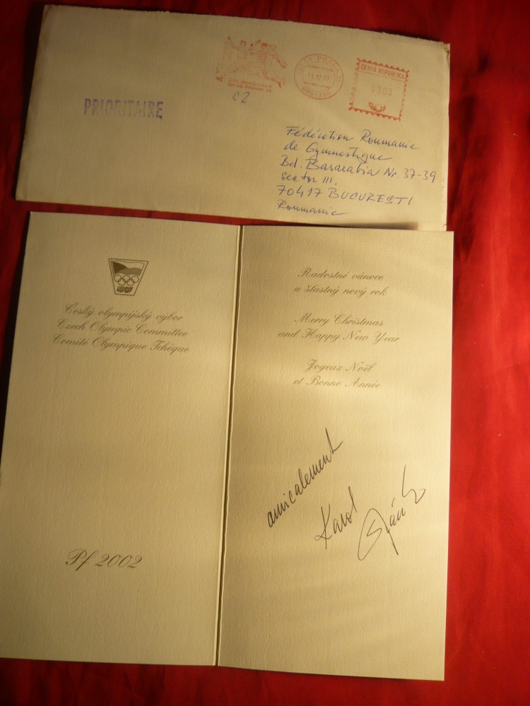 Felicitare din partea Federatiei Cehe de Gimnastica catre F.R.Gimnastica ,semnatura Pres.2002