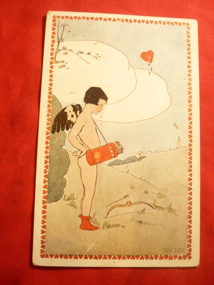 Felicitare inc.sec.XX , semnata Anny Tekauz- Eros in lacrimi