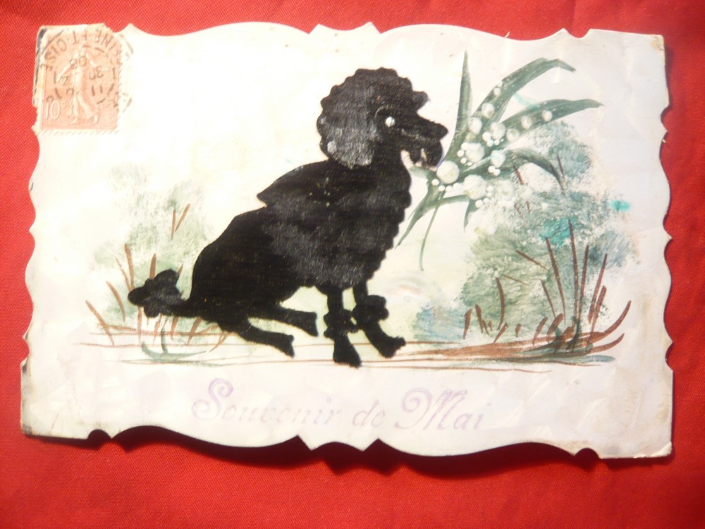 Felicitare TCV pictata manual - de 1 Mai - Catel in gradina 1906