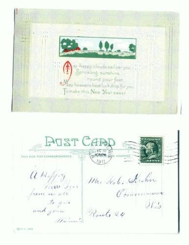 Felicitare veche 96 realizata in relief -circulata 1911 -SUA