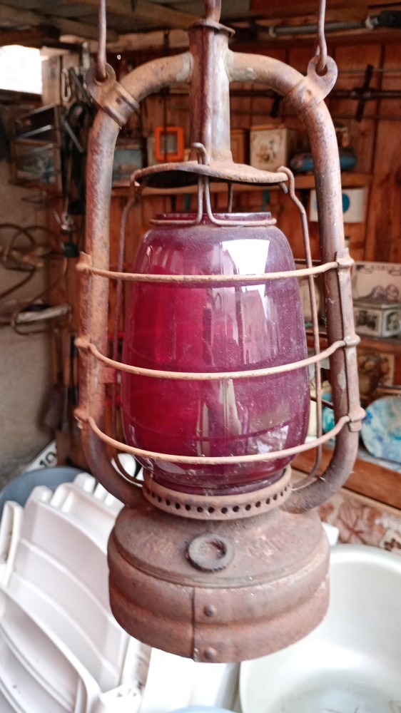 Felinarul este original ,sticla rosie de asemenea stare buna