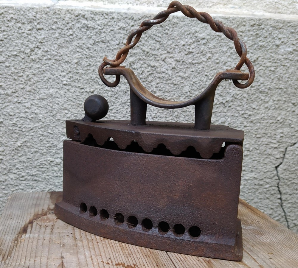 Vând un fier calcat vechi din fontă. Are marcaj pe interior capac