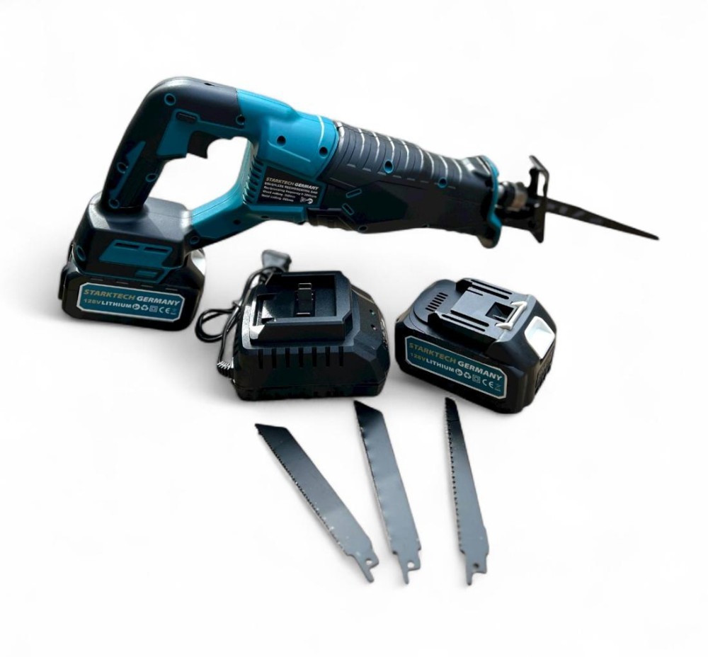 Fierastrau sabie 2x128V Starktech Germany Specificatii tehnice: - Voltaj: 128 V - Acumulator: 8.0 Ah - Putere: 3200 W - Viteza de rotatie: 3200 rot/min Continut pachet: - 2 x Acumulatori 128V 8Ah - 4 X LAME - 1 x Incarcator - 1 x Cutie de transport