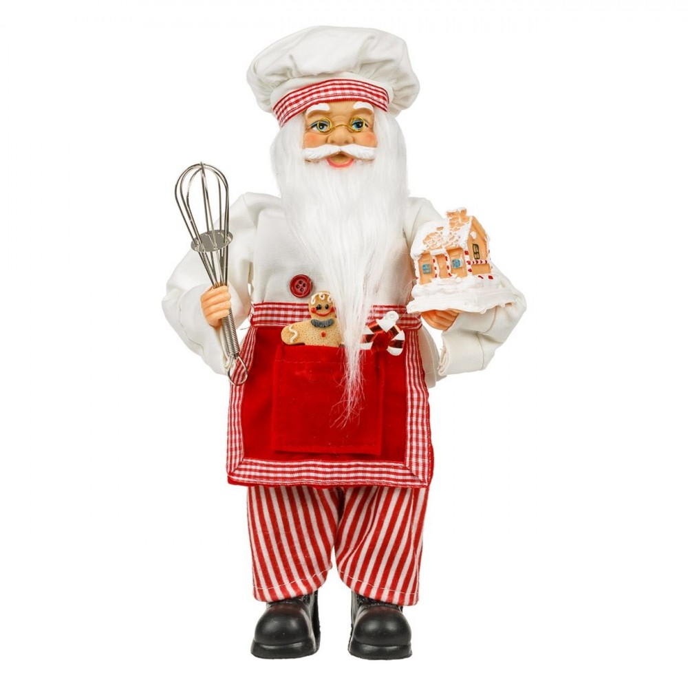 Figurină Decorativă, Moș Crăciun Cofetar, Poliester, Îmbrăcăminte Alb-Roșu, Înălțime 33 cm