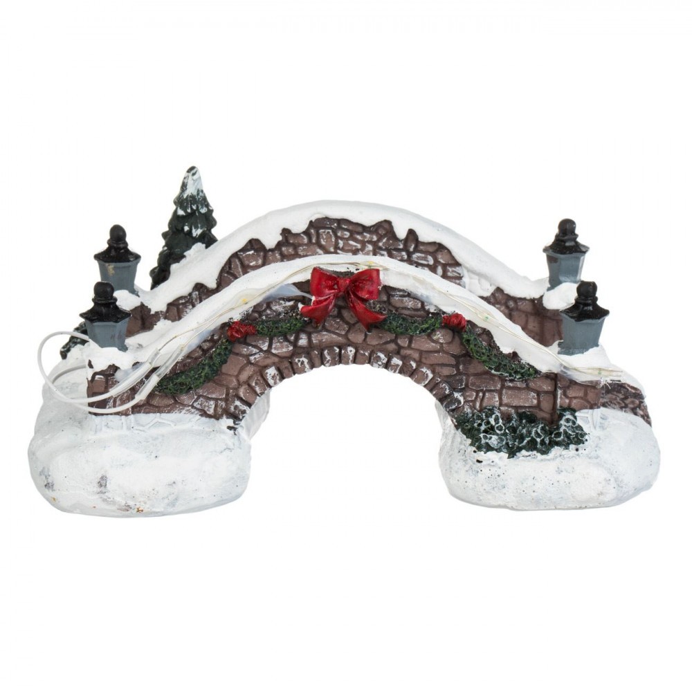 Figurină Pod Crăciun, Model Înzăpezit, LED, Multicolor
