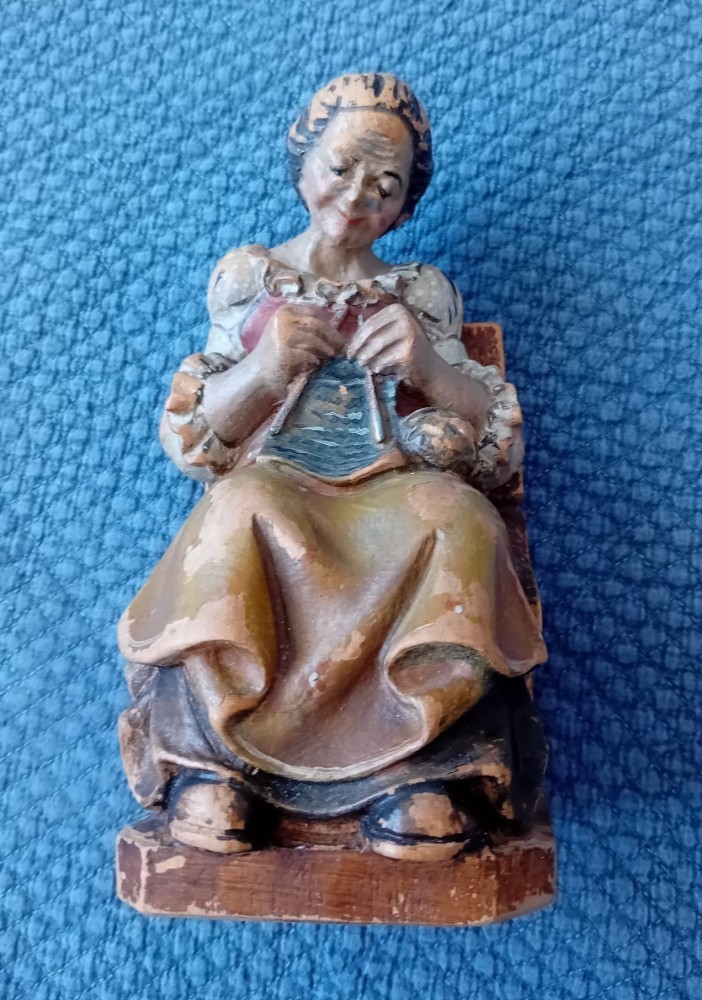 Figurina din lemn, cu un marcaj la fund, cu inaltimea de 20 cm, pictat insa vopseaua este decojita, cum se vede si in poze,