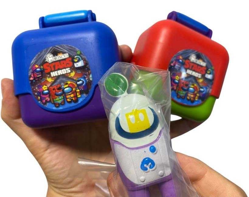 Jucarii Among Us in ghiozdanel. Fiecare ghiozdan contine cate o figurina diferita si un pliant. Dimensiune ghiozdan 8cm inaltime. Pretul este pentru un singur produs.
