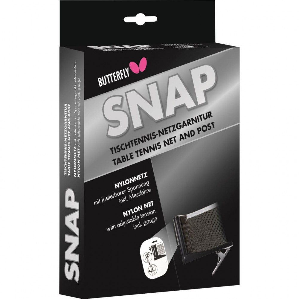 Set fileu tenis de masa Butterfly SNAP, rapid și ușor de instalat, metodă cleste de prindere, plasa de nailon, ambalat carton.