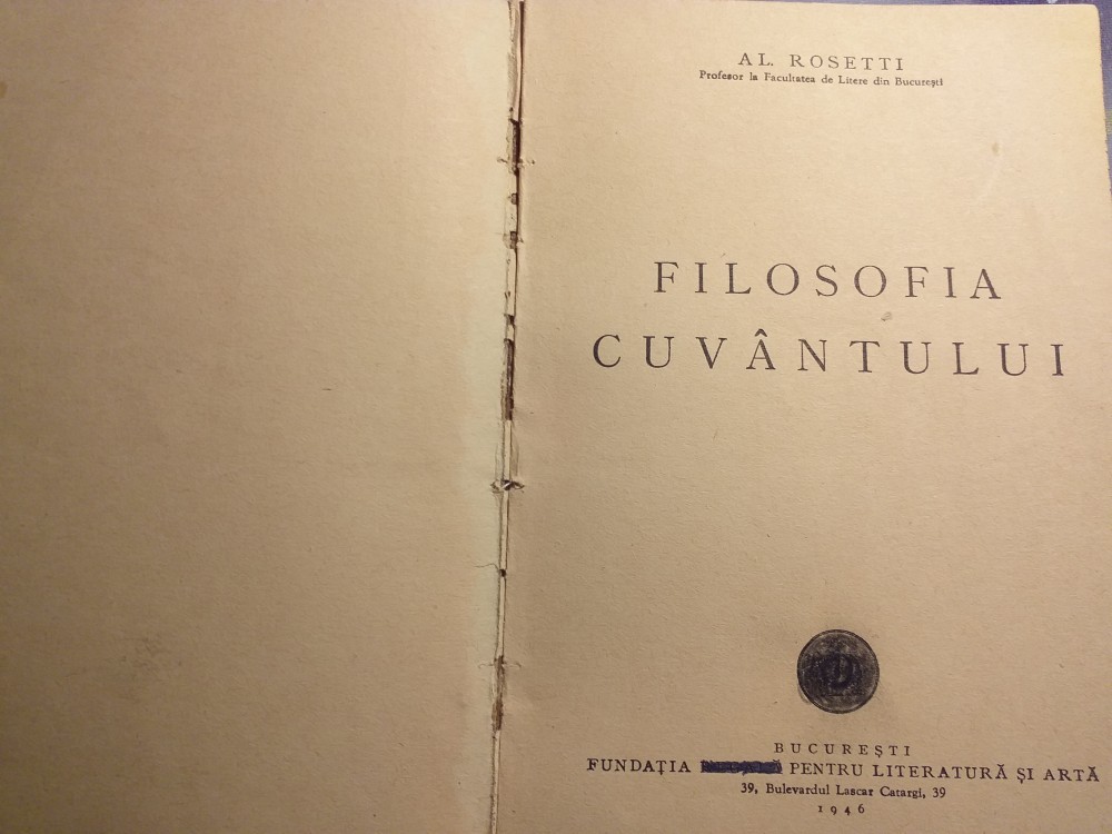 Filosofia Cuvantului- Al. Rosetti, editura pentru Literatură și Artă, 1946. Pretul include transportul.
