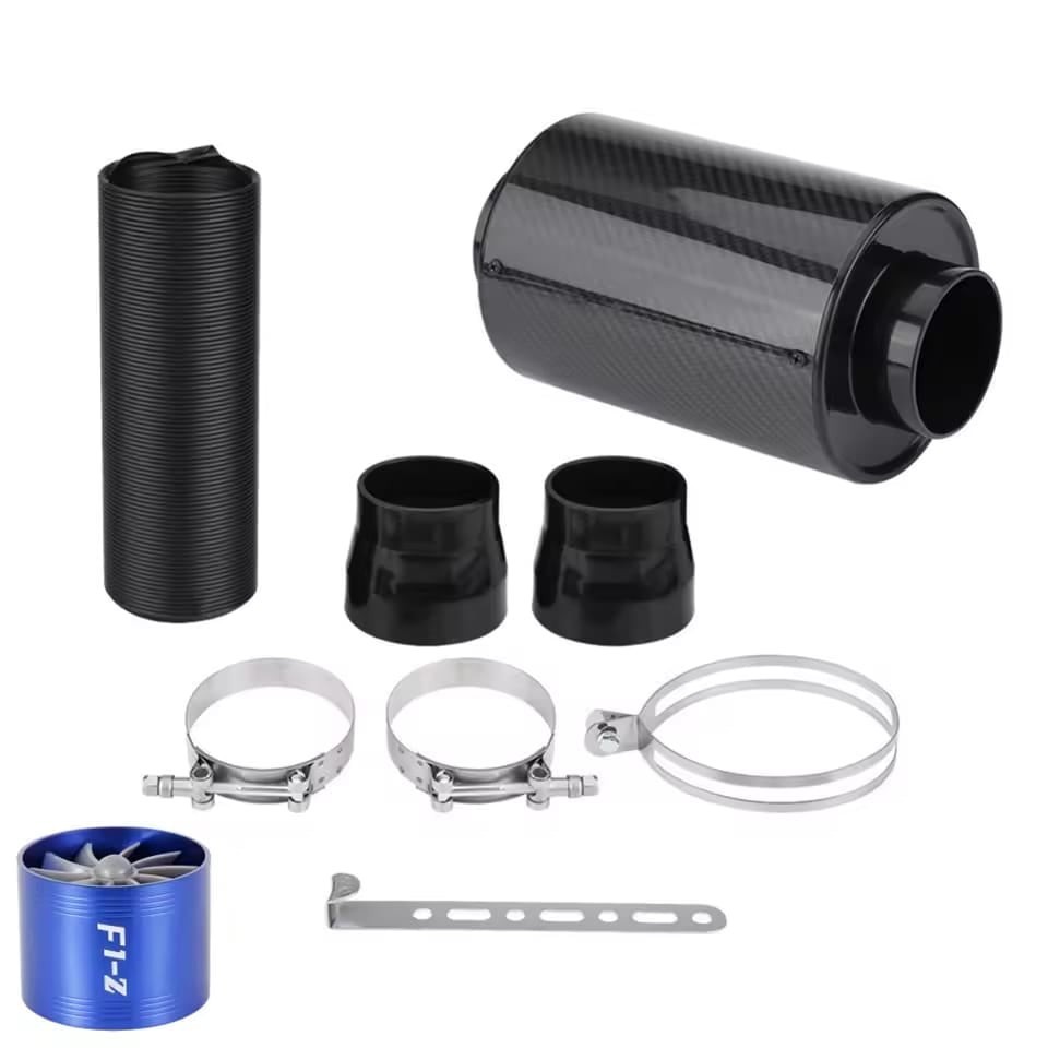 Filtru de aer sport cu ventilator turbina, carcasă carbon 4D, tub flexibil