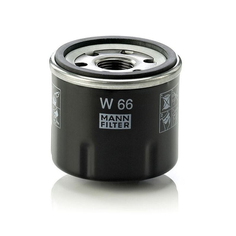 MANN‑FILTER W 66 este un filtru de ulei spin-on (tip de înșurubare), fabricat în Germania, destinat motoarelor mici pe benzină și GPL ale unor modele Dacia, Renault și Nissan (ex. Logan, Sandero, Clio, Kubistar). Oferă performanță OEM datorită media filtrante de înaltă calitate, supapei bypass din teflon și garniturilor rezistente. Designul permite o montare rapidă și siguranță durabilă a circuitului de ulei.