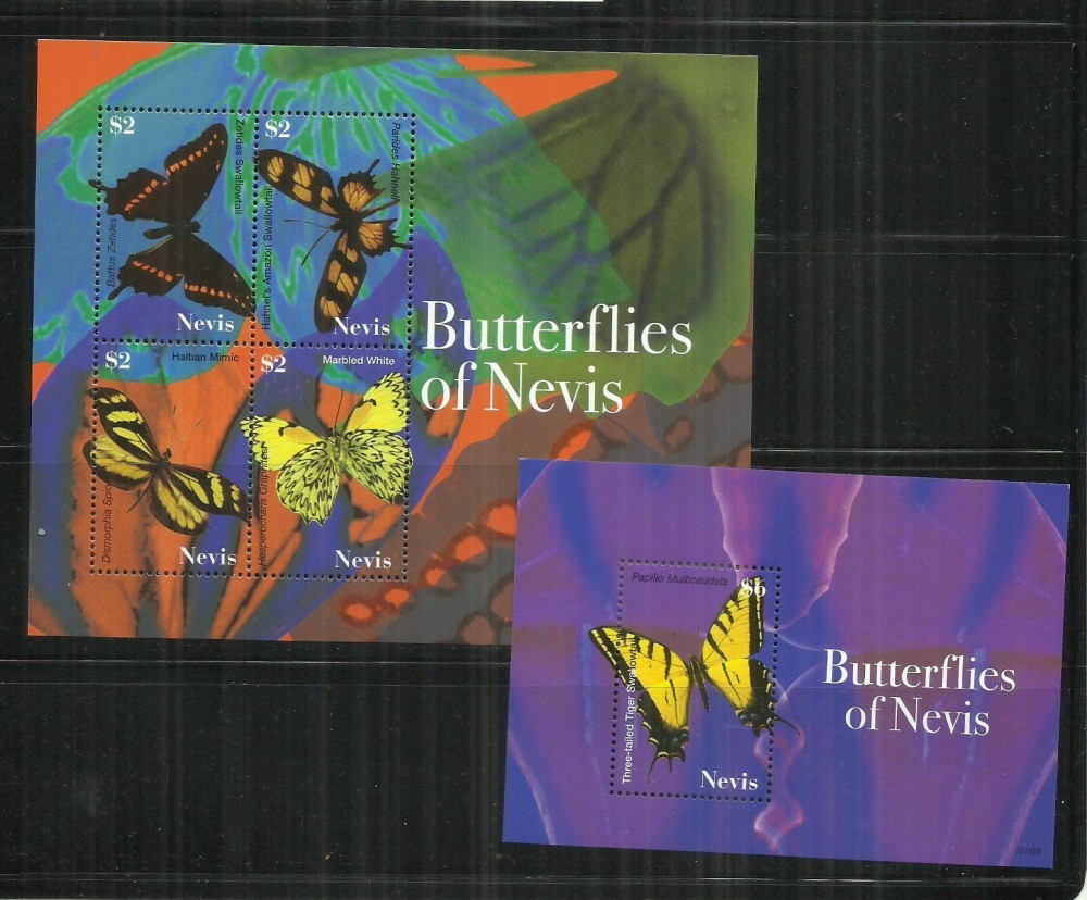 FL 26 - FLUTURI - NEVIS - 2 BLOCURI NESTAMPILATE