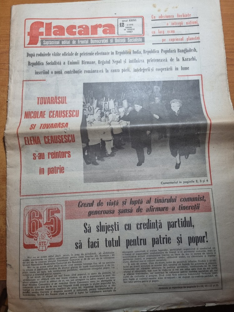 flacara 20 martie 1987-orezul de dunare,braila,ceausescu vizita in nepal